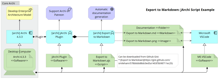 […] a given view, exporting the standard attributes and custom properties as headers. After putting my Export to Markdown script together, I felt like I could try and take a crack at putting this together in JArchi, with […]